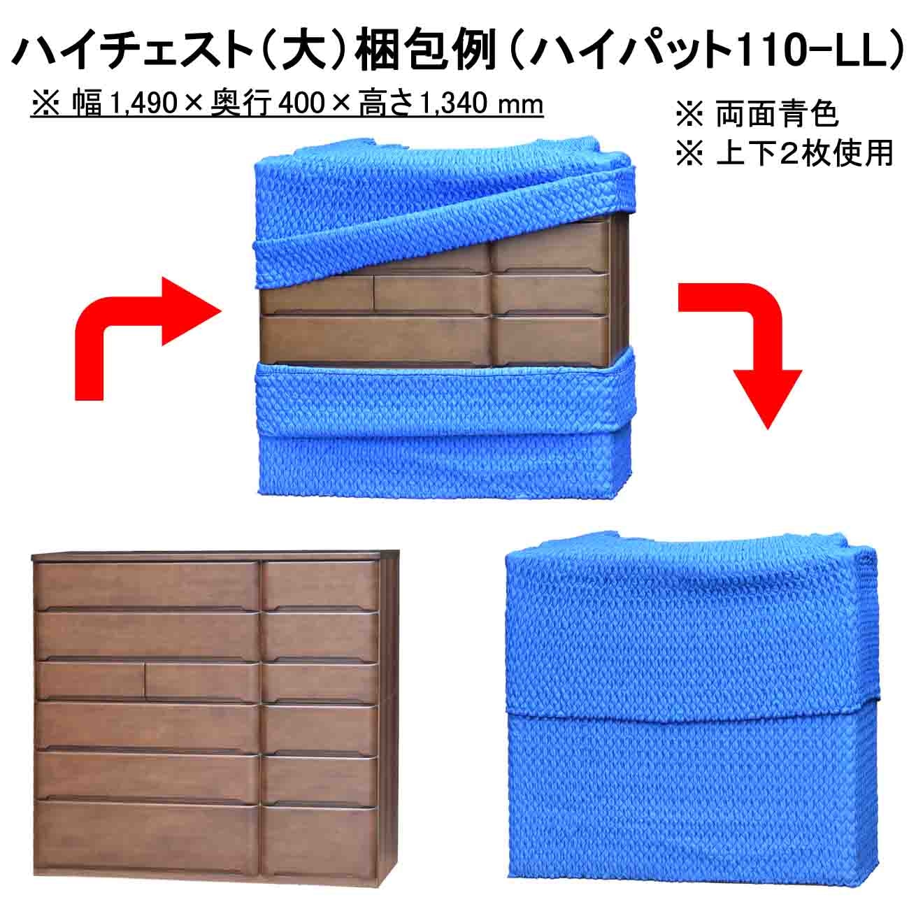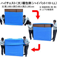 引越し・物流のロングセラー商品「ハイパット」 被せるだけで誰でもプロの梱包。 什器の形状や大小に関係なく、広げて被せるだけで初心者でもプロの梱包ができます。 繰り返して使えて省資源。ゴミが出ない。 ハイパットは丈夫で長持ち。使い捨て資材とは異なり、繰返して使えて経費削減に。 現場作業のスピードアップに。 カッターやテープを使わずゴミも出ないので、パッと被せて・サッと開梱。(※写真は "ハイパット110-L"使用)